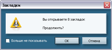 Обратите внимание, что Вы можете отказаться от таких предупреждений в дальнейшем. (Ещё раз повторю, что при открытии 5 или меньше закладок такой запрос не появляется.)